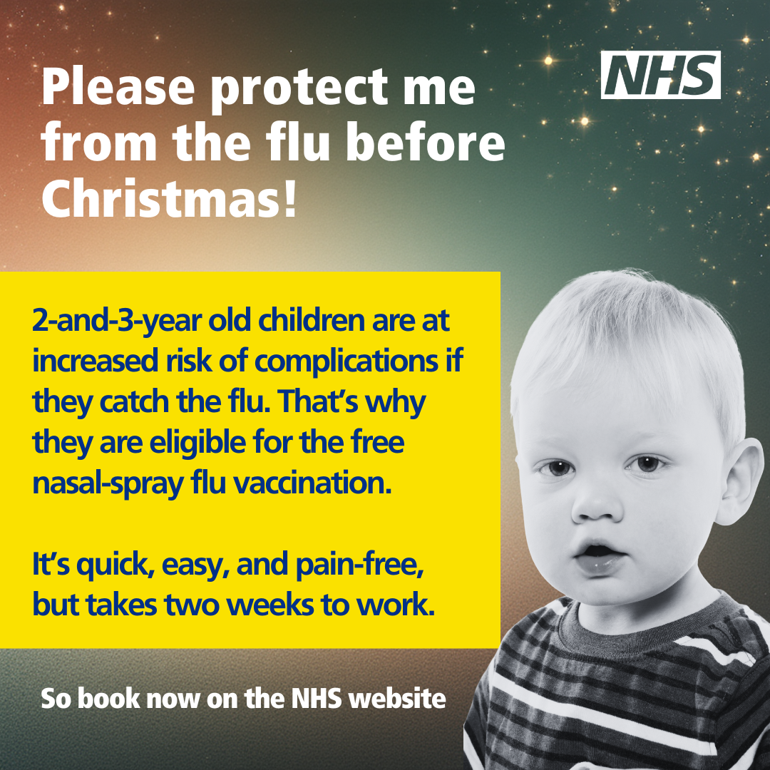 Parents and carers of 2- and 3-year-old children should visit the NHS website and book a flu vaccination appointment at their local pharmacy, or contact their GP surgery for an appointment.
