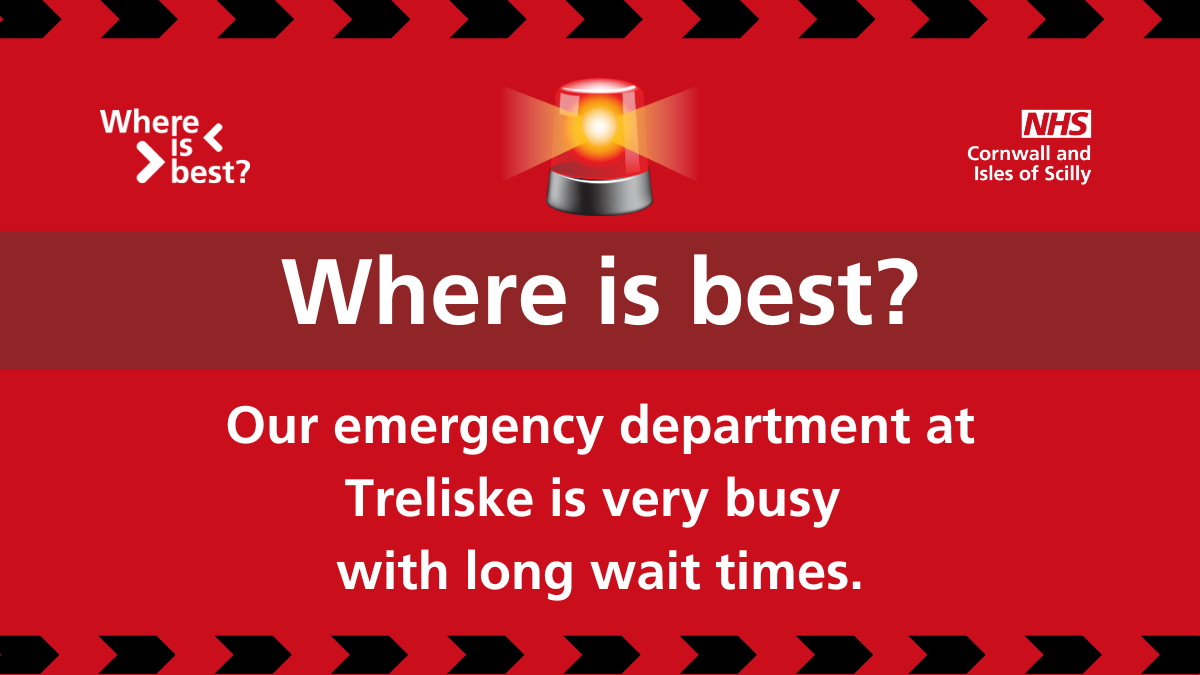 "Please only come to the emergency department if you have a life or limb-threatening emergency. Other NHS services are available, and we encourage you to use them whenever possible. These include our network of minor injury units, our urgent treatment centre at West Cornwall Hospital, out-of-hours GP services, local pharmacies and NHS 111.